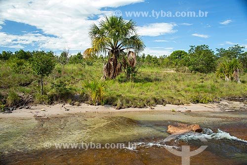 Bacuri tree (Scheelea phalerata) on the banks of the Agua Limpa River (Clear Water River) - Caiaponia city - Goias state (GO) - Brazil
