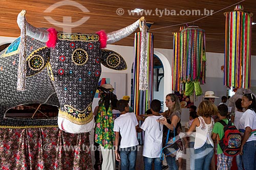 •  Detail of Bumba meu boi fantasy on exhibit - Casa do Maranhao (Maranhao House) with student in the background  - Sao Luis city - Maranhao state (MA) - Brazil