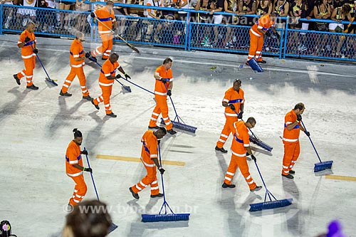 •  Street sweeper of COMLURB cleaning the Marques de Sapucai Sambadrome during interval between the samba schools  - Rio de Janeiro city - Rio de Janeiro state (RJ) - Brazil