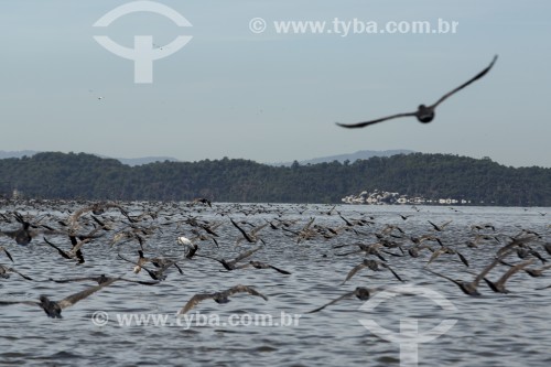 Flock of birds at the bottom of Guanabara Bay - Mage city - Rio de Janeiro state (RJ) - Brazil