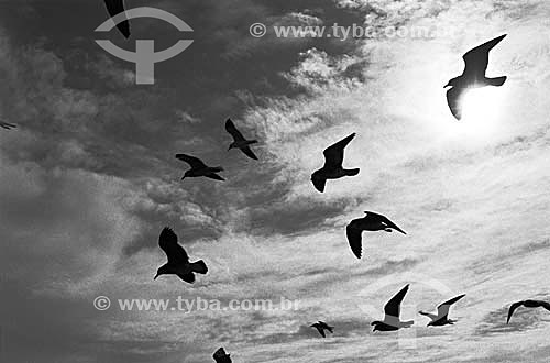 •  Silhouette of sea gulls flying - Brazil
