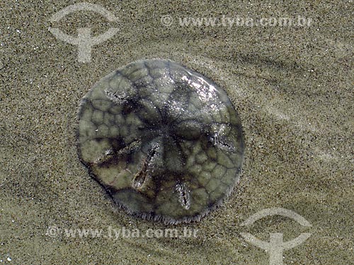 •  Sand dollar (Mellita quinquiesperforata) - the waterfront of the beach of the Ilha Comprida city  - Ilha Comprida city - Sao Paulo state (SP) - Brazil