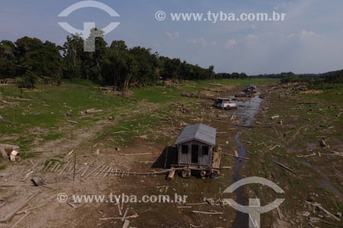 • Floating house stranded in the community of Catalao Lake during the dry season in the Amazon rivers - Careiro da Varzea city - Amazonas state (AM) - Brazil