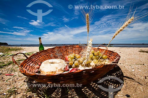 Subject: Straw basket with offerings to Yemanja / Place: Sepetiba city - Rio de Janeiro state (RJ) - Brazil / Date: 02/2013