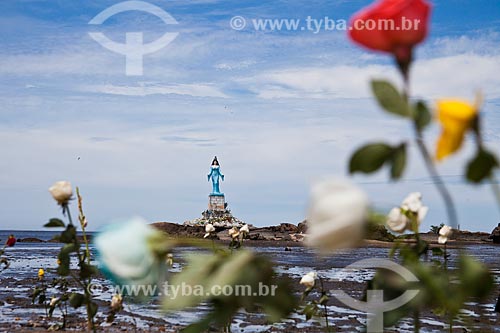 •  Subject: Flowers in the Reconcavo Beach with the statue of Yemanja in the background / Place: Sepetiba city - Rio de Janeiro state (RJ) - Brazil / Date: 02/2013