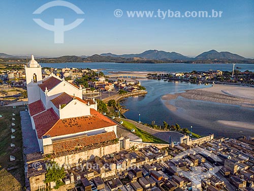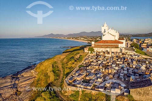 Picture taken with drone of the Our Lady of Nazareth Church (1837) and the Municipal Cemetery of Saquarema during the sunset - Saquarema city - Rio de Janeiro state (RJ) - Brazil