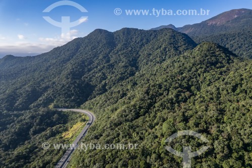 Picture taken with drone of BR-277 (Grande Estrada) - Road that connects Curitiba to the coast of Parana - Serra do Mar - Morretes city - Parana state (PR) - Brazil