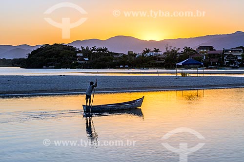 •  Canoe - Guarda do Embau Beach waterfront - Serra do Tabuleiro State Park during the evening  - Palhoca city - Santa Catarina state (SC) - Brazil