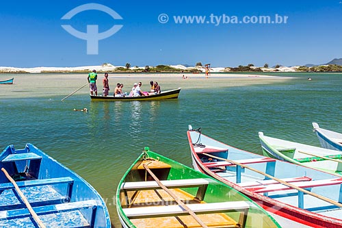 Berthed canoe - mouth of Madre River - Guarda do Embau Beach - Serra do Tabuleiro State Park - Palhoca city - Santa Catarina state (SC) - Brazil