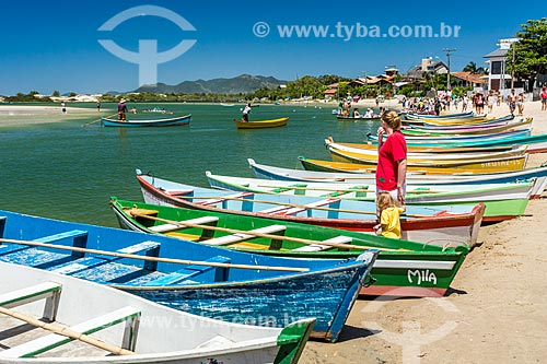 Berthed canoes - mouth of Madre River - Guarda do Embau Beach - Serra do Tabuleiro State Park - Palhoca city - Santa Catarina state (SC) - Brazil