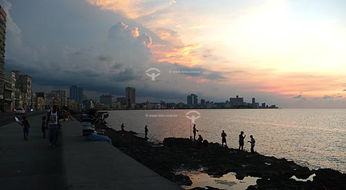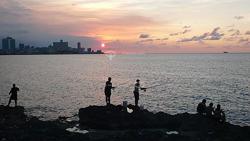 Subject: Fishermen in Malecon at the sunset / Local: Havana - Cuba / Date: october 2009