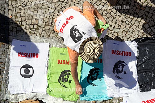 Top view of street vendor of the shirts during the demonstration against the government of Michel Temer - asking Direct Elections Now - Rio de Janeiro city - Rio de Janeiro state (RJ) - Brazil