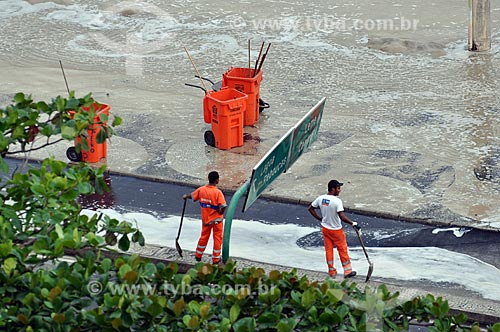 Subject: Street sweepers removing sand brought by the undertow on Copacabana Beach / Place: Copacabana neighborhood - Rio de Janeiro city - Rio de Janeiro state (RJ) - Brazil / Date: 05/2011