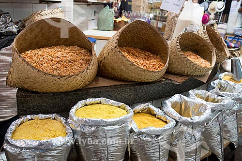 Detail of dried shrimp to sale - Luiz Gonzaga Northeast Traditions Centre - Rio de Janeiro city - Rio de Janeiro state (RJ) - Brazil
