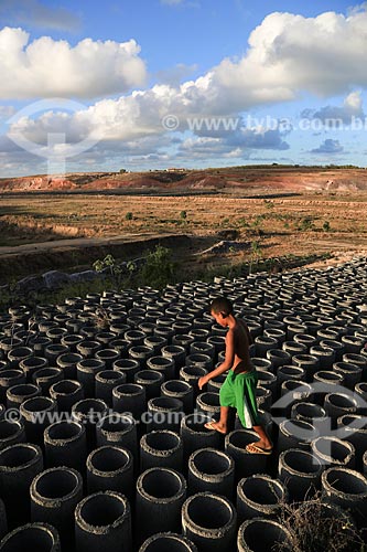 Children play in the area that would be destined to shrimp farming - enterprise embargoed because of irregularities detected in its construction that contradicted the existing environmental legislation - Pitimbu city - Paraiba state (PB) - Brazil