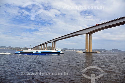 View of catamaran that makes crossing between Rio de Janeiro and Niteroi with the Rio-Niteroi Bridge (1974) during the Rio Boulevard Tour - boat sightseeing in Guanabara Bay - Rio de Janeiro city - Rio de Janeiro state (RJ) - Brazil