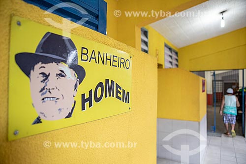 Detail of mens bathroom signage board - Luiz Gonzaga Northeast Traditions Centre - Rio de Janeiro city - Rio de Janeiro state (RJ) - Brazil