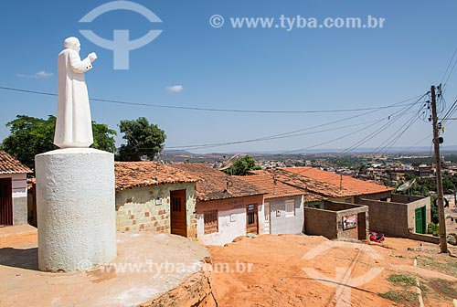 Padre Cicero statue and simple houses on the outskirts of Crato - Crato city - Ceara state (CE) - Brazil