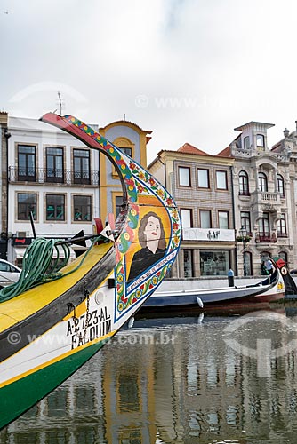 Detail of moliceiro decorated with painting by fado singer Amalia Rodrigues - Aveiro city - Aveiro district - Portugal