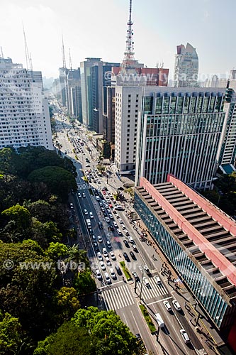 •  General view of Paulista Avenue with the Tenente Siqueira Campos Park - also known as Trianon Park - to the left - and the Art Museum of Sao Paulo (MASP)  - Sao Paulo city - Sao Paulo state (SP) - Brazil