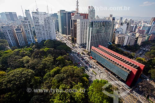 General view of Paulista Avenue with the Tenente Siqueira Campos Park - also known as Trianon Park - to the left - and the Art Museum of Sao Paulo (MASP) - Sao Paulo city - Sao Paulo state (SP) - Brazil