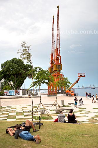 People lying in lawn of the Maua Square - Rio de Janeiro city - Rio de Janeiro state (RJ) - Brazil
