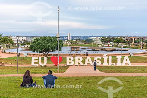 •  Detail of placard that says: I love Brasilia - Burle Marx Garden  - Brasilia city - Distrito Federal (Federal District) (DF) - Brazil