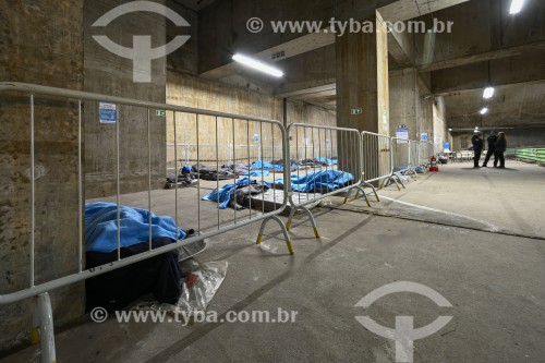 • Improvised shelter for homeless people at Dom Pedro Metro Station due to the arrival of a cold front - Sao Paulo city - Sao Paulo state (SP) - Brazil