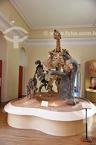 Fossils of Smilodon saber-toothed tiger and Ground sloth on exhibit - National Museum - old Sao Cristovao Palace - Rio de Janeiro city - Rio de Janeiro state (RJ) - Brazil