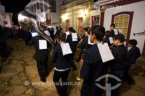 •  Marching band - procession of the meeting between the images of Jesus Christ and Our Lady - during the Bom Jesus dos Passos celebrations  - Tiradentes city - Minas Gerais state (MG) - Brazil