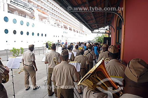 Municipal Guard marching band playing during the tourists disembark - Pier Maua - Rio de Janeiro city - Rio de Janeiro state (RJ) - Brazil