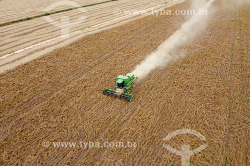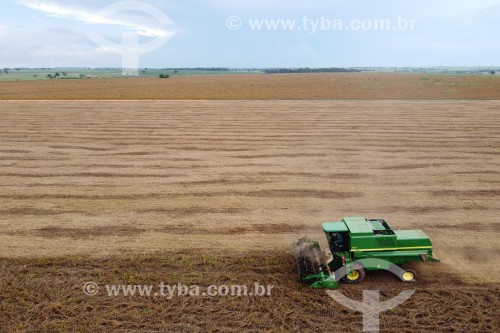 Picture taken with drone of the soy mechanized harvesting - Planalto city - Sao Paulo state (SP) - Brazil