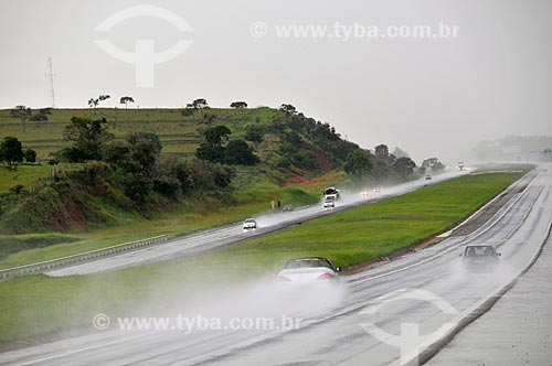 •  Subject: View of the SP-280 highway (Castelo Branco highway) with the track wet by rain in the Bofete region  / Place:  Bofete city - Sao Paulo state - Brazil  / Date: 02/2009