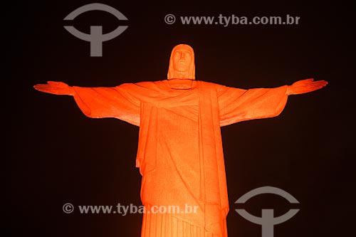 •  Christ the Redeemer (1931) with special lighting - orange - due to the campaign against skin cancer  - Rio de Janeiro city - Rio de Janeiro state (RJ) - Brazil