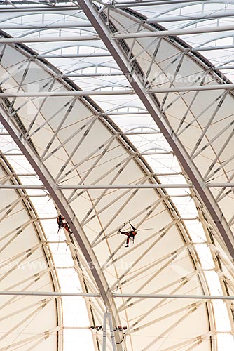 Detail of workers on the roof of Jose Pinheiro Borda Stadium (1969) - also known as Beira-Rio - Porto Alegre city - Rio Grande do Sul state (RS) - Brazil