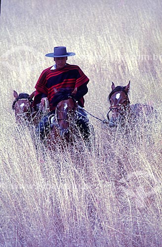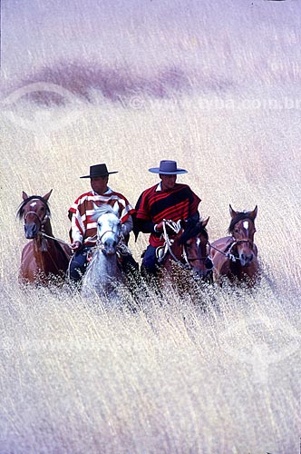 Cattle herding with typical costumes - coxilhas of the southern fields - Rio Grande do Sul state (RS) - Brazil