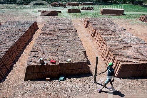 Workers carrying tiles to pottery courtyard - Nazaria city - Piaui state (PI) - Brazil