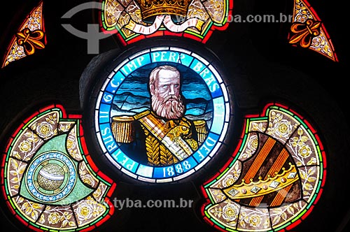 •  Stained glass window showing D. Pedro, the last emperor of Brazil on