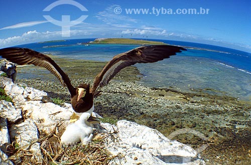 Subject: Brown Booby with nestling / Place: Marine National Park of Abrolhos - Bahia state / Date: 2008