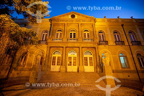 Facade of building of Praia Vermelha Campus of the Federal University of Rio de Janeiro - old University of Brazil - during the nightfall - Rio de Janeiro city - Rio de Janeiro state (RJ) - Brazil