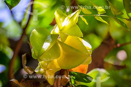 Detail of carambolas still at carambola tree (Averrhoa carambola) - Rio Claro city - Sao Paulo state (SP) - Brazil