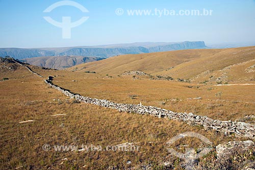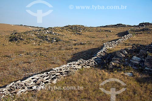 •  Stone wall built by the slaves to separate the cattle ranches in the Serra da Babilônia - Complexo da Serra da Canastra - around the Serra da Canastra National Park  - Sao Roque de Minas city - Minas Gerais state (MG) - Brazil