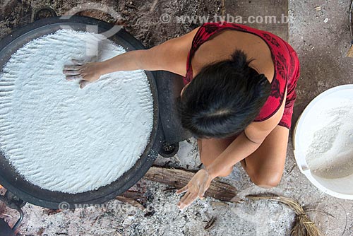 Indigenous woman preparing tapioca - also known as beiju - Aiha village of the Kalapalo tribe - INCREASE OF 100% OF THE VALUE OF TABLE - Querencia city - Mato Grosso state (MT) - Brazil