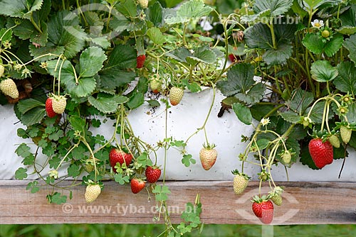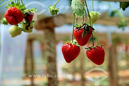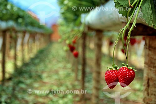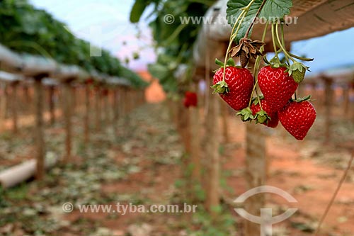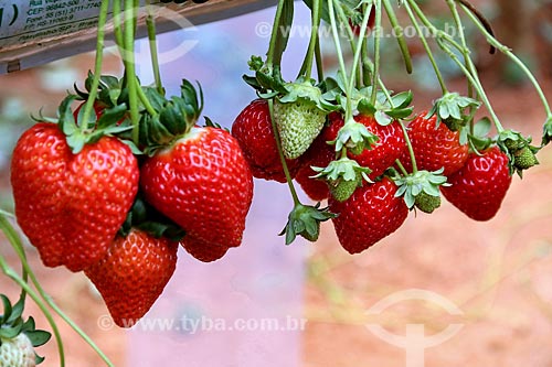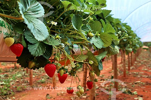 Detail of strawberry plantation - greenhouse of rural property on the banks of the RS-235 Highway - Nova Petropolis city direction - Gramado city - Rio Grande do Sul state (RS) - Brazil
