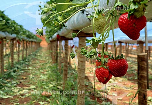 •  Detail of strawberry plantation - greenhouse of rural property on the banks of the RS-235 Highway - Nova Petropolis city direction  - Gramado city - Rio Grande do Sul state (RS) - Brazil