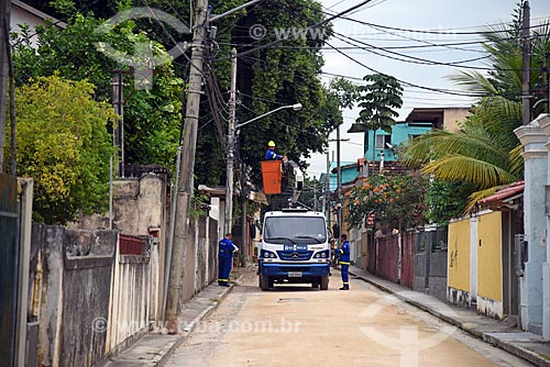 Labourer of the Municipal Energy and Lighting Company (Rioluz) doing the maintaining the electrical network - Paqueta Island - Rio de Janeiro city - Rio de Janeiro state (RJ) - Brazil