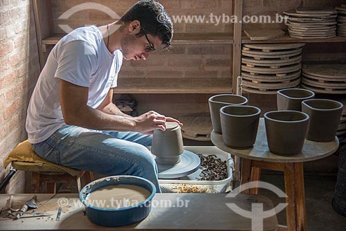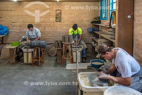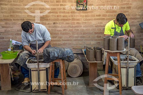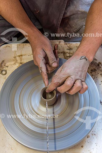 Detail of artisans molding a ceramic utensil - Cunha city - Sao Paulo state (SP) - Brazil