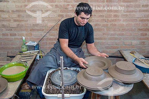 •  Detail of artisans molding a ceramic utensil  - Cunha city - Sao Paulo state (SP) - Brazil