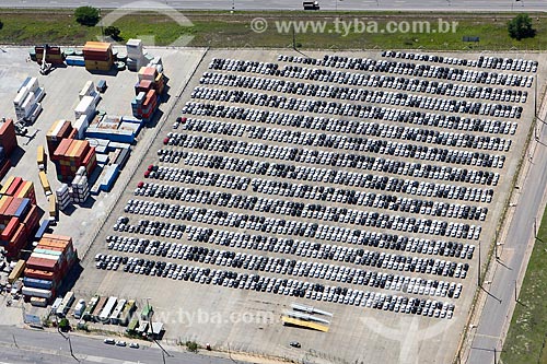Aerial photo of the containers and cars - courtyard of Port of Suape Complex - Ipojuca city - Pernambuco state (PE) - Brazil