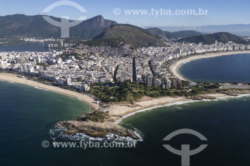 Picture taken with drone of the Arpoador Stone with Ipanema and Copacabana Beaches in the background - Rio de Janeiro city - Rio de Janeiro state (RJ) - Brazil